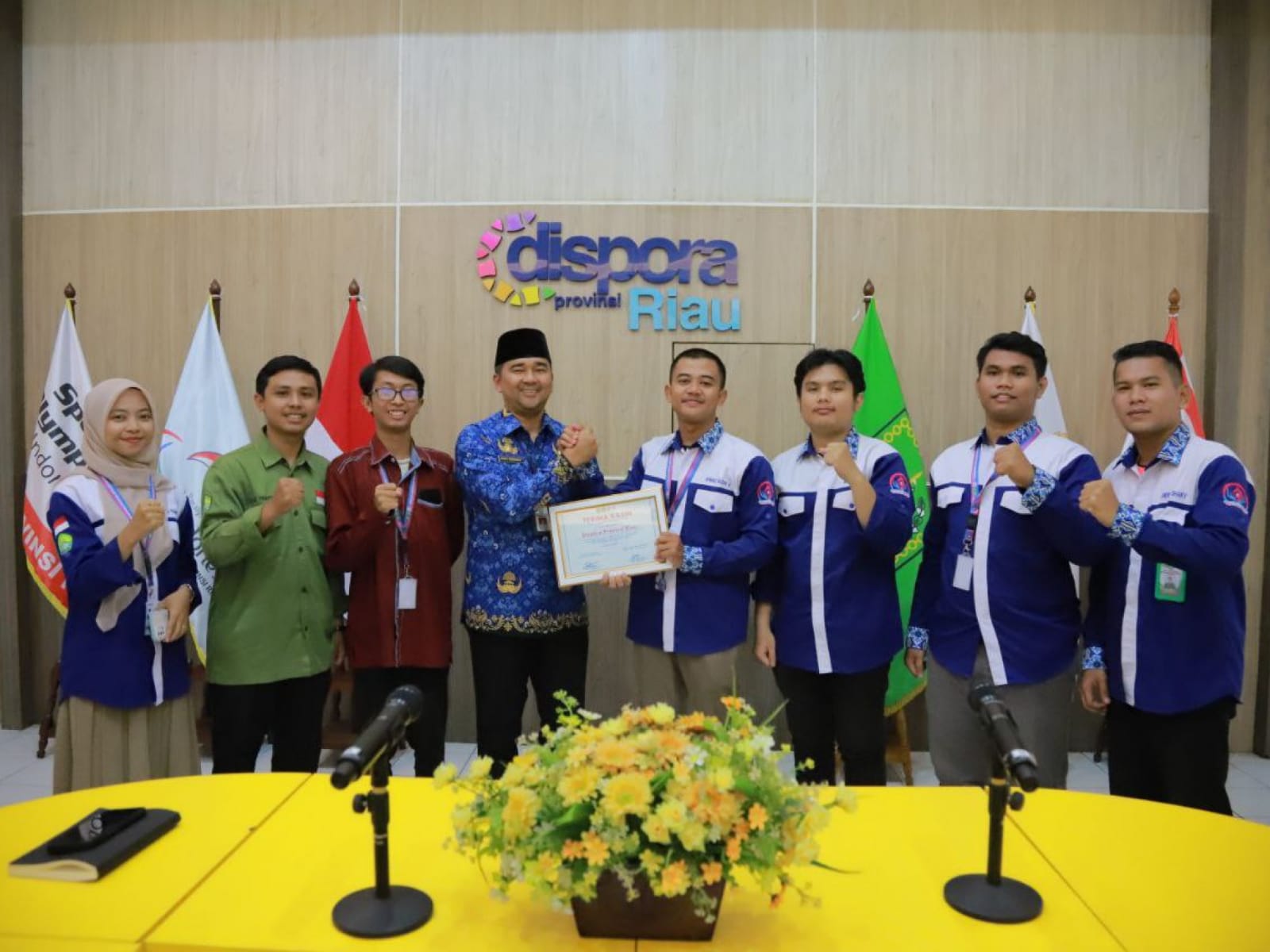 Kabarviral, Pekanbaru – Kepala Dinas Kepemudaan dan Olahraga (Dispora) Provinsi Riau H Boby Rachmat S STP MSi AIFO-P menerima kedatangan Badan Eksekutif Mahasiswa Fakultas Keguruan dan Ilmu Pendidikan Universitas Riau (BEM FKIP UNRI) Dinas Minat dan Bakat Periode 2023 di Aula Kantor Dispora Riau, Rabu (29/11/2023).