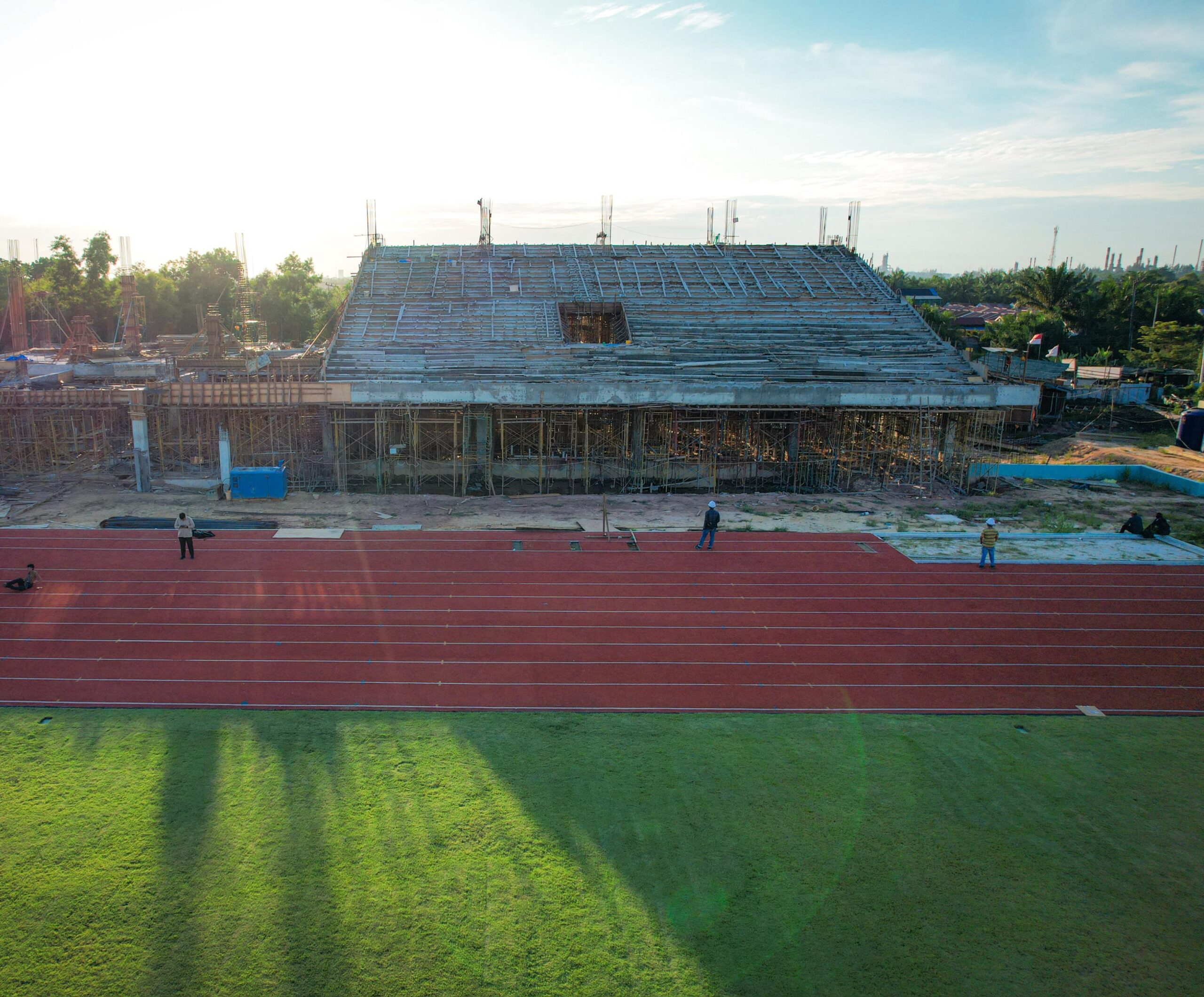 Muhammad Mufarizal, S.T., M.IP selaku Kepala Dinas Pertanahan dan Tata Ruang (Dispertaru) Kota Dumai yang menaungi pengerjaan stadion sepakbola menyampaikan jika pengerjaan lapangan sudah selesai sepenuhnya dan dilanjutkan dengan pembangunan tribun.