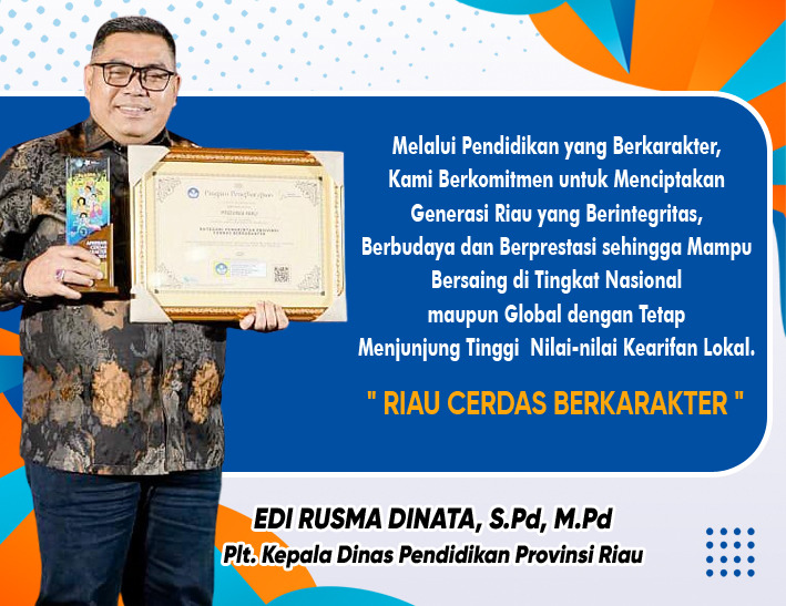 Plt Kepala Dinas Pendidikan Provinsi Riau mengucapkan alhamdulillah dan rasa syukurnya atas penghargaan yang diberikan oleh Kemendikbudristek RI untuk kategori Pemerintah Daerah Cerdas Berkarakter 2024. Penghargaan ini membuktikan bahwa Riau siap mewujidkan pendidikan cerdas yang berkarakter kepada peserta didik.